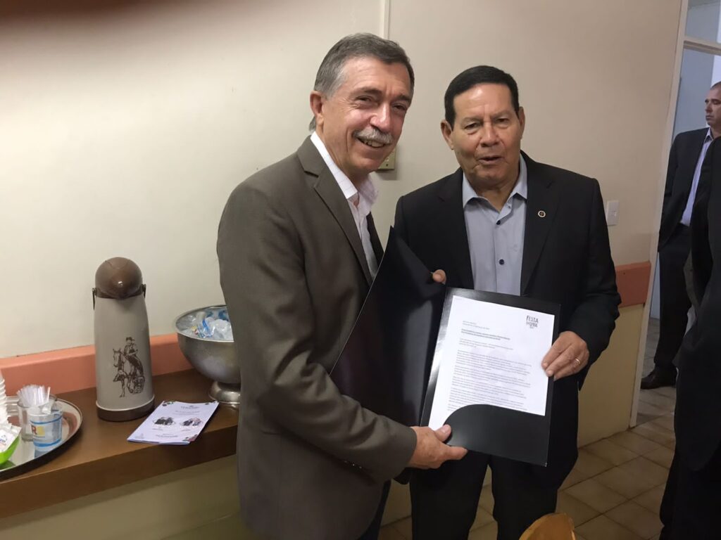 O prefeito de Caxias do Sul, Adiló Didomenico, manteve encontro, nesta quinta (24), com o vice-presidente da República, Hamilton Mourão, a quem entregou demanda relacionada com a 33ª edição da Festa Nacional da Uva. No documento, o prefeito pede ao vice-presidente apoio quanto à solicitação feita pela Comissão Comunitária da Festa da Uva para liberação, pela União, de R$ 3 milhões por meio da Lei Rouanet.
