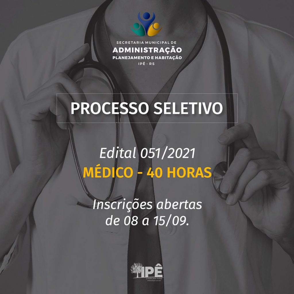 A prefeitura de Ipê abriu Processo Seletivo Simplificado para contratação de um médico pelo período de seis meses prorrogáveis.
