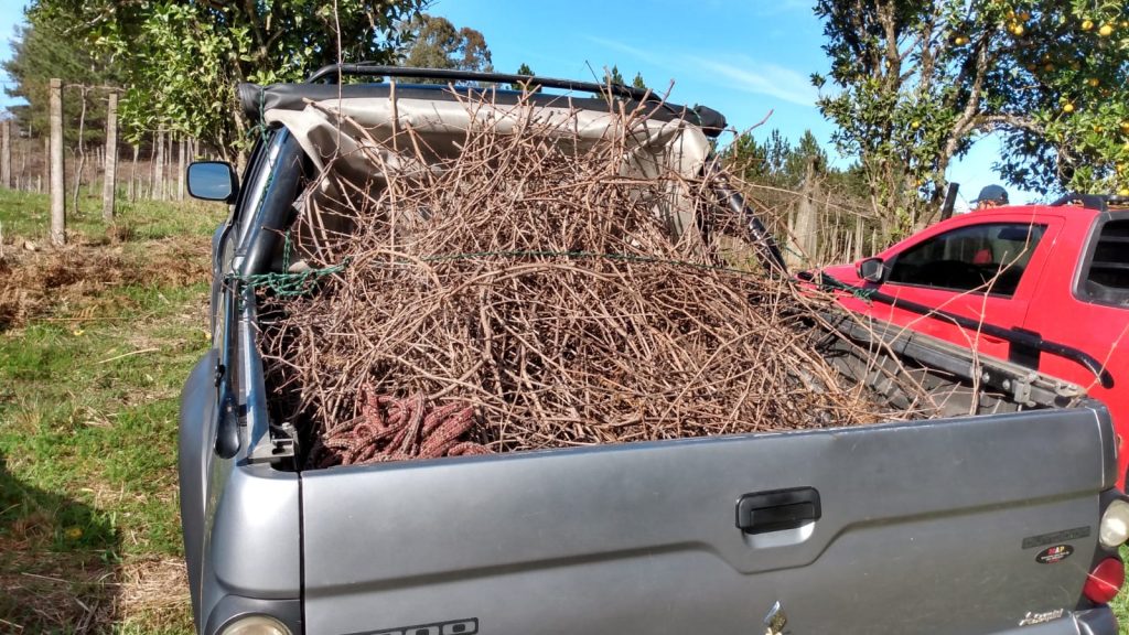 Aproveitando o tempo seco, a equipe da SMAPA coordenou o corte das estacas no matrizeiro (área de cultivo) em terreno da Fepagro, em Fazenda Souza. Ele foi implantado pela SMAPA a partir de mudas provenientes de um viveiro certificado pela Embrapa como livre das principais viroses da videira. Como ocorreu em 2020, o porta-enxerto disponibilizado é o Paulsen 1103, cujas principais características são o vigor e a resistência à doença conhecida como fusariose.
