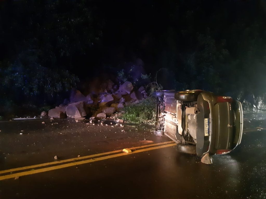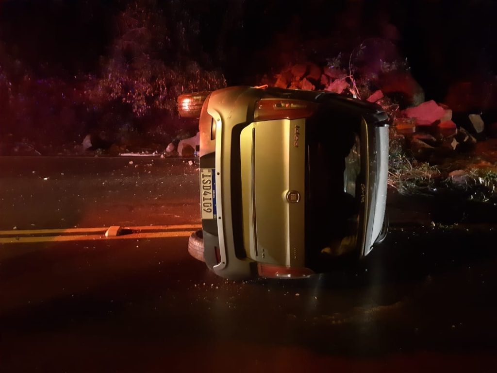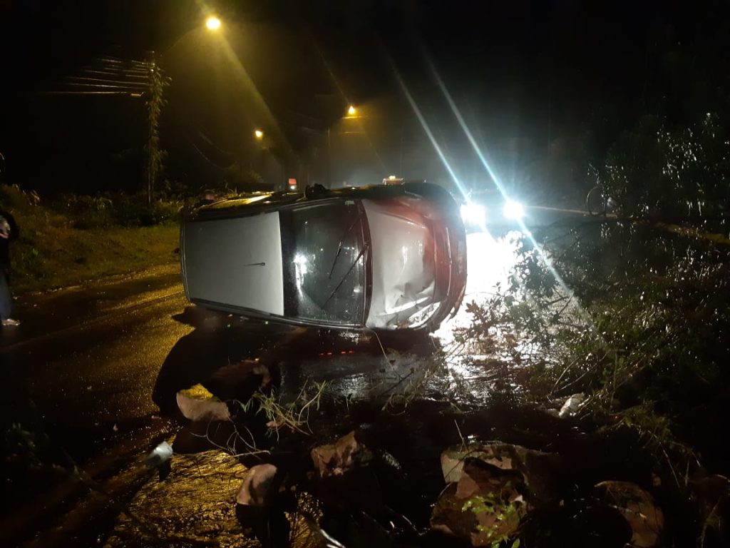 Três carros estavam passando pelo local no momento, por volta das 22h45min. Um deles acabou capotando. Apesar do susto, ninguém ficou ferido.