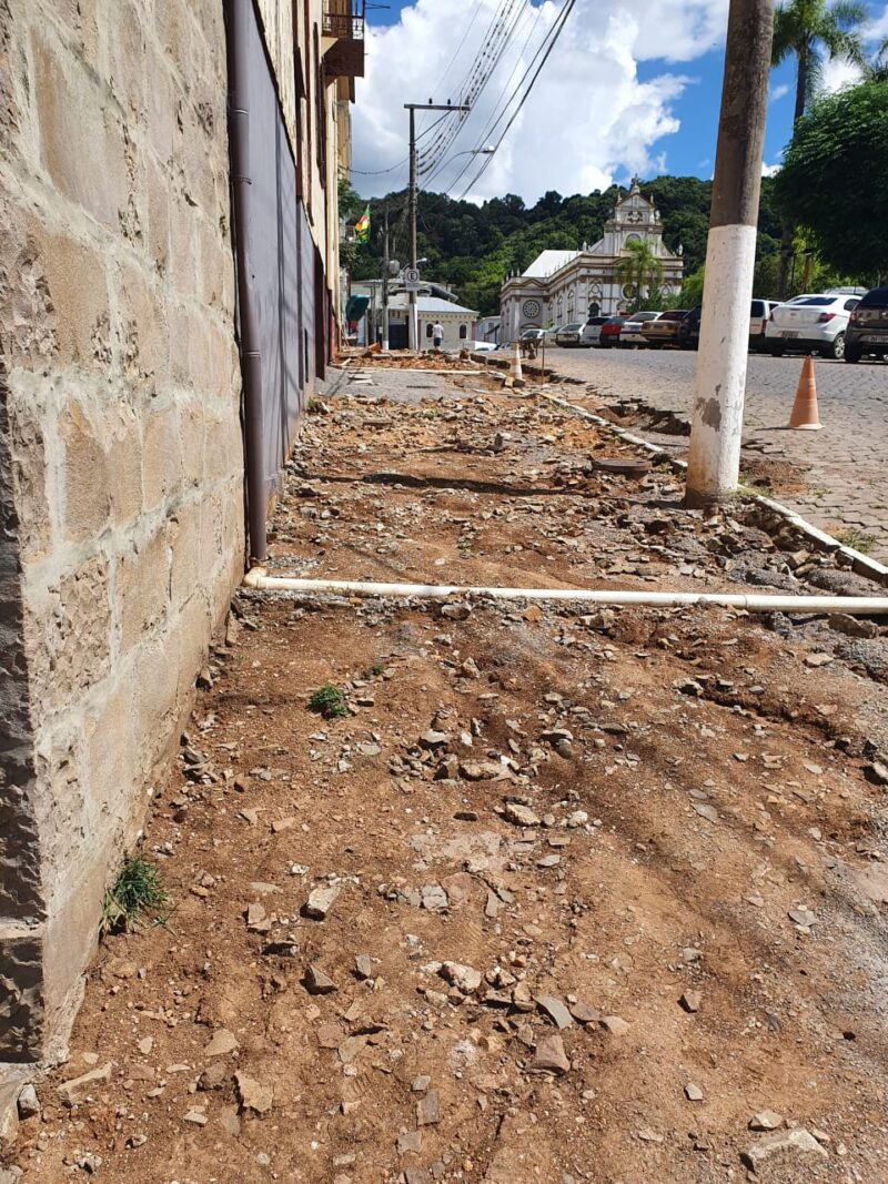 Em dezembro passado, no dia 20, faltando 11 dias para finalizar a administração anterior, a empresa vencedora da licitação retirou a calçada em todo o trecho e parou por ai.