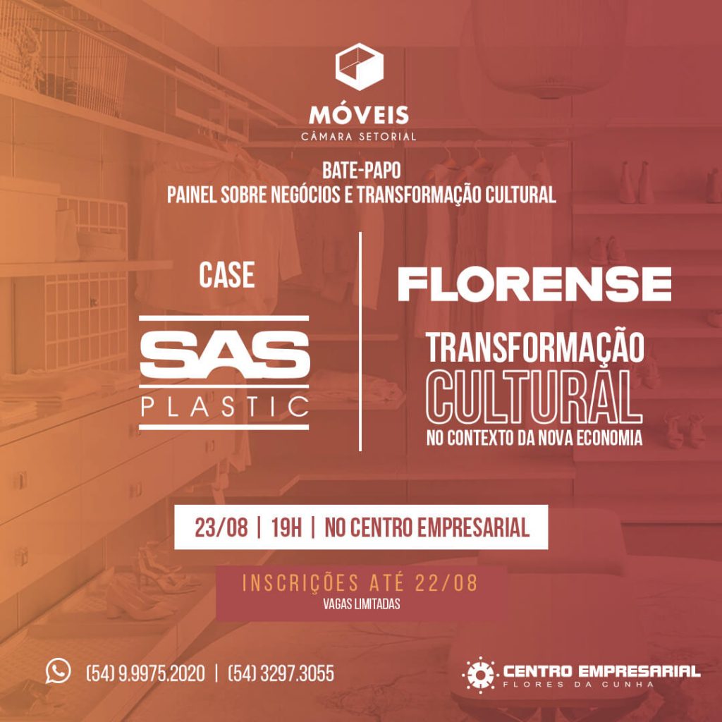 Representantes da Móveis Florense e SAS Plastic dividem o palco do Centro Empresarial na noite desta segunda-feira (23), às 19h, para falar sobre o tema: Transformação Cultural no Contexto da Nova Economia.