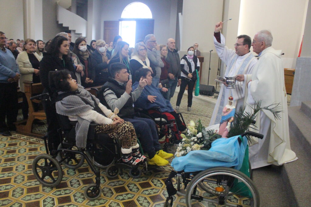 A 1ª Romaria das Pessoas com Deficiência ao Santuário Diocesano de Nossa Senhora de Caravaggio aconteceu neste domingo (22). Mais de 300 pessoas fizeram caminhada e mais de 600 pessoas participaram da benção em frente ao Santuário, segundo os números da Polícia Rodoviária Estadual (PRE). Com palavras de fé, carinho e acolhida, o reitor do santuário, padre Ricardo Fontana, acolheu a todos na esplanada do santuário e logo em seguida deu a benção aos participantes desta peregrinação. Após a benção participaram da santa missa presidida pelo padre Alcindo Trubian.