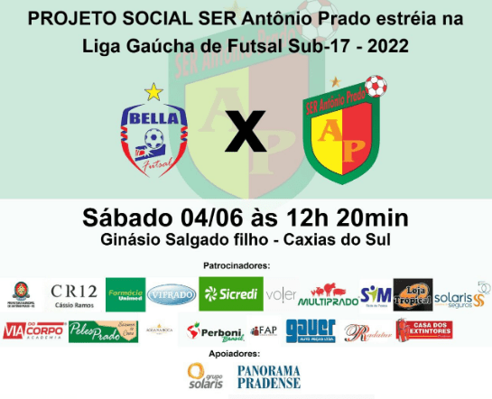A equipe da SER Antônio Prado estreia neste sábado(04), na Liga Gaúcha de Futsal Sub-17, partida marcada para 12h20min no Ginásio Salgado Filho em Caxias do Sul, contra o Bella Futsal.