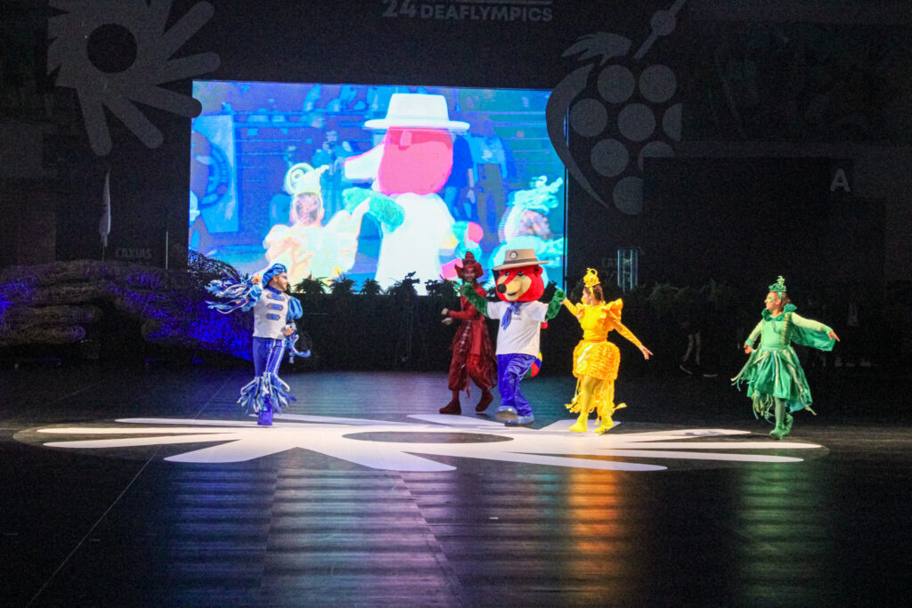A solenidade foi apresentada na língua brasileira e internacional dos sinais, com tradução para o inglês. Com o tema “Mãos que falam”, o espetáculo incluiu apresentação dos grupos Endança Jazz & Cia, Os Gaudérios e Joanas D’Ar Circo de Aéreos; interpretação em libras do Hino Nacional por alunos da Escola Heller Keller, com acompanhamento do gaiteiro Rafa De Boni; e desfile das delegações dos 77 países participantes. A representação da Ucrânia foi recebida em pé e com aplausos ao trazer uma bandeira com o pedido de “Pare a guerra”. O mascote Nino, um quati-de-cauda-anelada, e artistas acompanharam cada país no desfile.