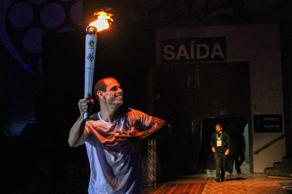 A solenidade foi encerrada com a entrada da chama olímpica no ginásio levada pelo medalhista de ouro do Brasil na Surdolimpíadas de 2017, o nadador Guilherme Maia, simbolizando todos os surdoatletas do mundo. A tocha foi entregue para Mário Júlio de Matos Pimentel, ex-presidente da CBDS, que acendeu a pira.