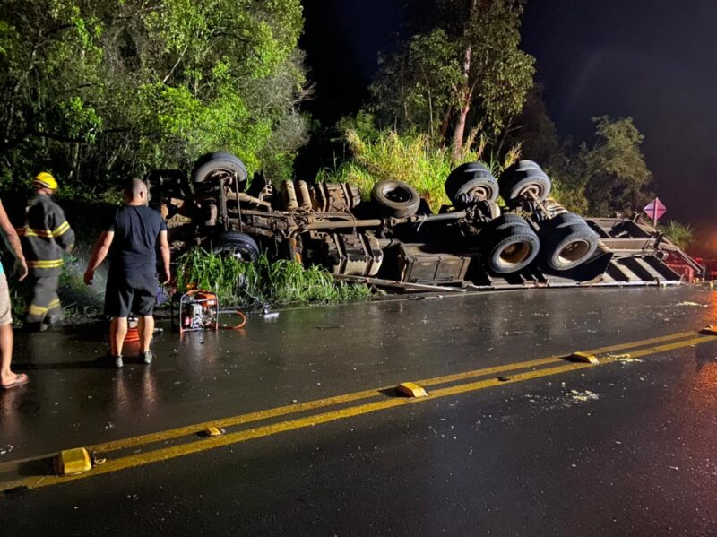 Caminhão tomba na ERS-122 em Flores da Cunha
