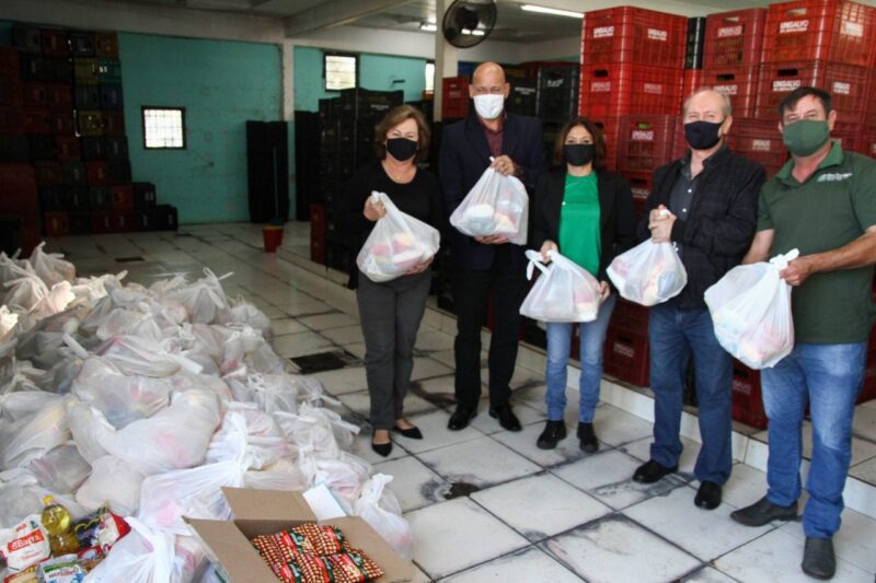 Cestas básicas são entregues a inscritos no Bolsa Família e para famílias haitianas em Flores da Cunha