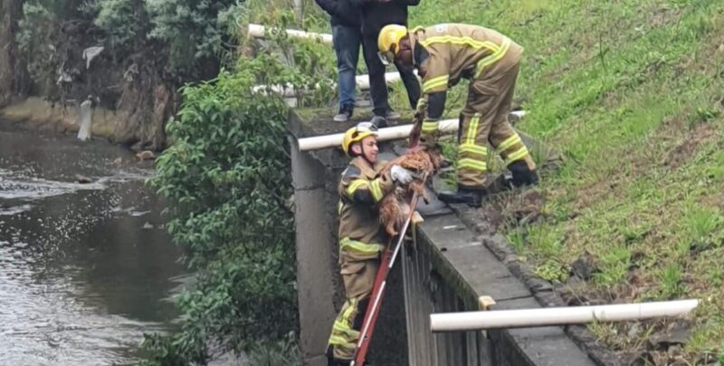 Cão cai no Arroio Tega em Caxias e é resgatado pelo Corpo de Bombeiros Militar
