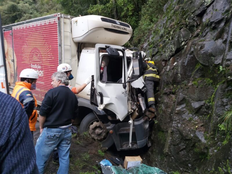 O motorista do caminhão seguia no sentido Flores-Antônio Prado, quando perdeu o controle do veículo e colidiu contra o talude de pedras que há no local Um homem ficou preso…