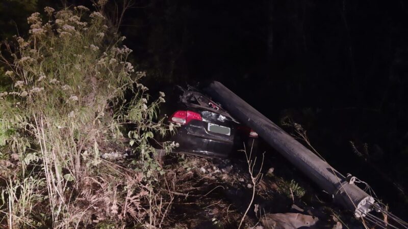 Motorista colide veículo e arranca poste de energia elétrica na Linha 60 de Flores da Cunha