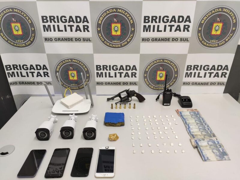 Com eles foram apreendidos quantidade de drogas, arma, munições, câmeras de videomonitoramento e outros materiais Um homem foi preso e três menores foram apreendidos pela Brigada Militar por tráfico de…