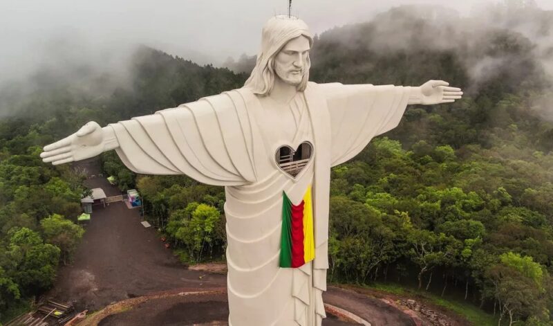 Bandeira gigante do RS é estampada no coração do Cristo Protetor de Encantado