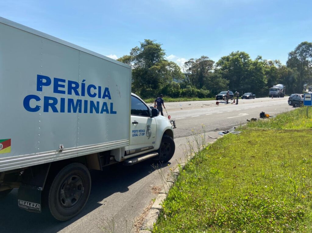 Três pessoas morreram em um acidente, no km 150 da RSC-453, em Caxias do Sul. A colisão entre uma Toyota Hilux SW4 e um Ford Fiesta ocorreu nas proximidades da empresa de chapas de acrílico, Acrylis, na Rota do Sol, por volta das 7h desta sexta-feira (5).