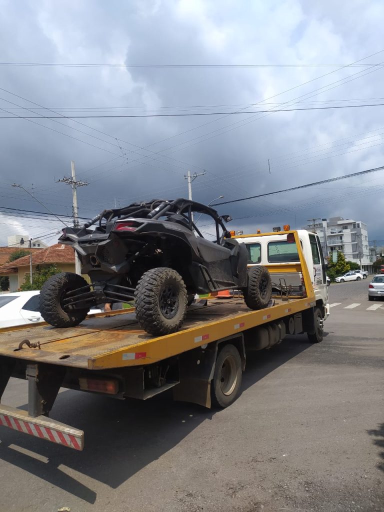 Um veículo sem placa foi recolhido na manhã deste sábado (5) no Centro de Flores da Cunha. O condutor do veículo modelo Maverick x3 foi abordado pela Brigada Militar (BM) na rua Barros Cassal, por volta de 10h50min.