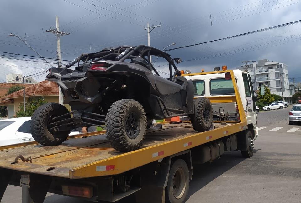 Um veículo sem placa foi recolhido na manhã deste sábado (5) no Centro de Flores da Cunha. O condutor do veículo modelo Maverick x3 foi abordado pela Brigada Militar (BM) na rua Barros Cassal, por volta de 10h50min.