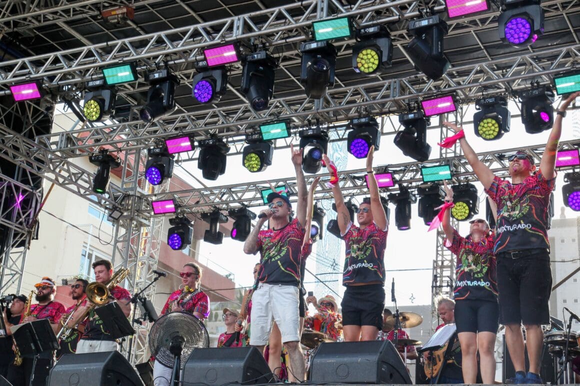 O elenco performático foi comandado pela Banda Bloco da Velha, sob a produção musical do caxiense Dan Ferretti e setlist de ritmos nacionais do DJ Jorge “Mono” de Jesus, e sacudiu o público com sonorização distribuída em dois andares. O grupo Time Dance Tudo, coordenado pelo bailarino Rodrigo Scherer, também agitou palco e plateia, fazendo-os sair do chão, juntamente com a bem-humorada personagem do ator Davi Souza, a Bastiana.