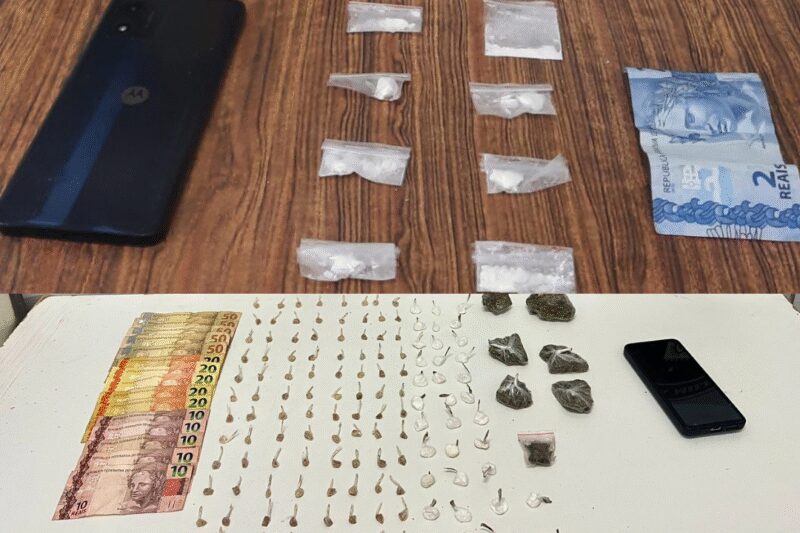 Mais tarde, às 17h30min, no bairro Industrial, outro flagrante resultou na prisão de um jovem de 19 anos. Em uma área conhecida pelo tráfico, a BM apreendeu 100 pedras de crack, sete porções de maconha, 35 buchas de cocaína, R$ 400 em espécie e um celular.