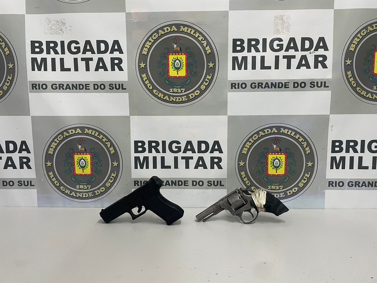 A ação ocorreu pouco antes da 1h, quando policiais flagraram os três discutindo em via pública. Durante a abordagem, os agentes perceberam que um dos envolvidos tinha um ferimento na cabeça. Na revista, a BM apreendeu um revólver calibre .38 e um simulacro de pistola.