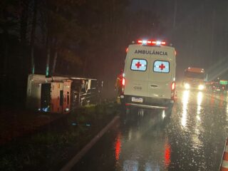 Caminhão tomba ao tentar desviar de acidente na ERS-122, em Caxias do Sul