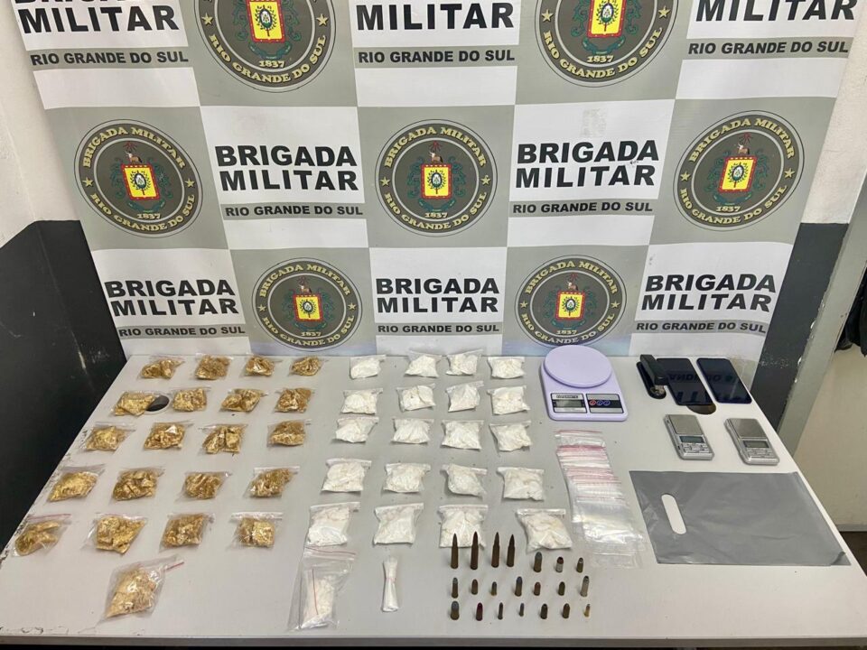 No bairro Charqueadas foram recolhidas 20 porções de cocaína (totalizando cerca de um quilo), 21 porções de crack (um quilo também), dois telefones celulares, três balanças de precisão, além de material para embalagem e munições de diversos calibres.