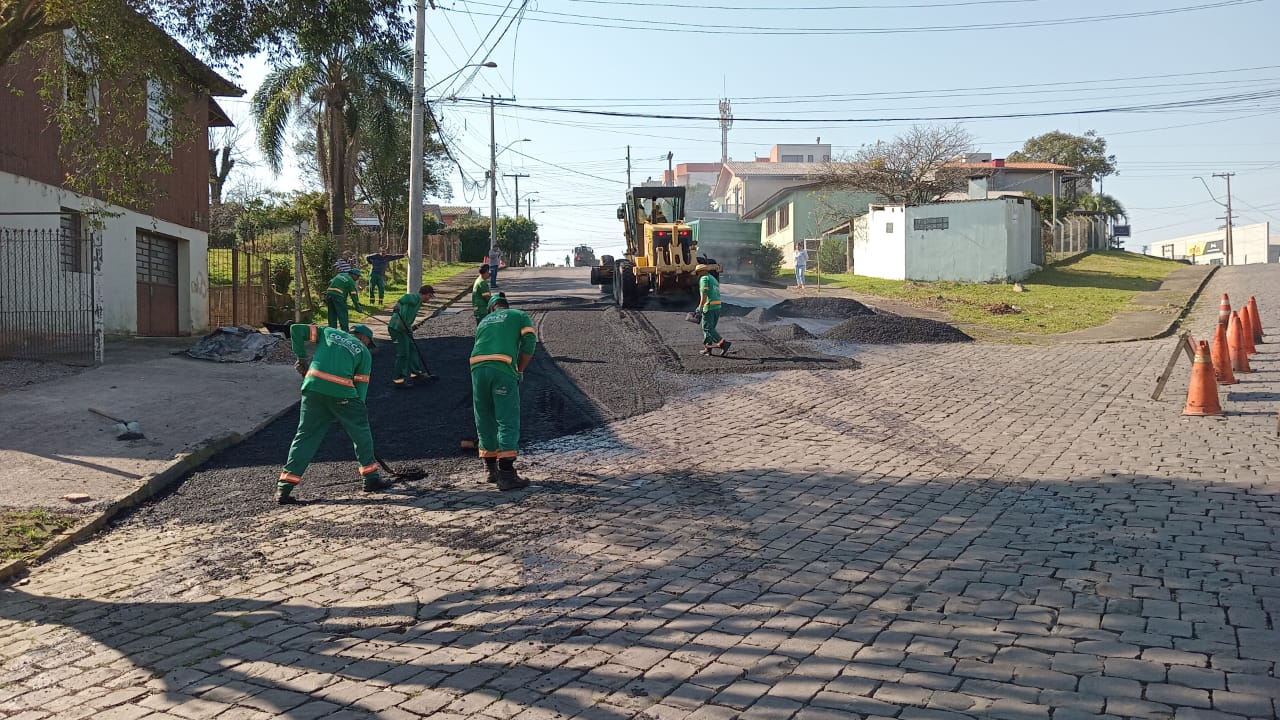 Com sol e o tempo seco, a primeira via a receber o asfalto está sendo a rua Nayr Leonzio Covolan, no bairro Santa Lúcia, a partir da rua Ernesto Zanrosso. Após a limpeza e marcação da rua, a mesma está recebendo a camada niveladora e base de asfalto para depois, nos próximos dias, receber a camada definitiva da pavimentação.