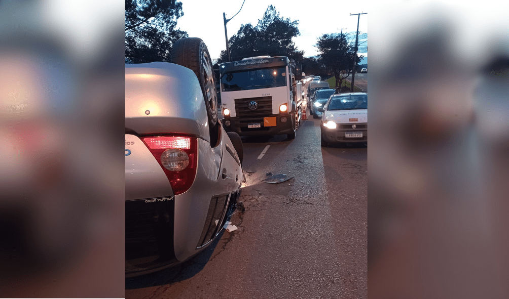 Um acidente de trânsito provocou um capotamento na manhã desta sexta-feira (25), em Caxias do Sul. O sinistro envolveu um carro e um caminhão, por volta das 06h40min, na Perimetral Bruno Segalla. Ninguém se feriu.