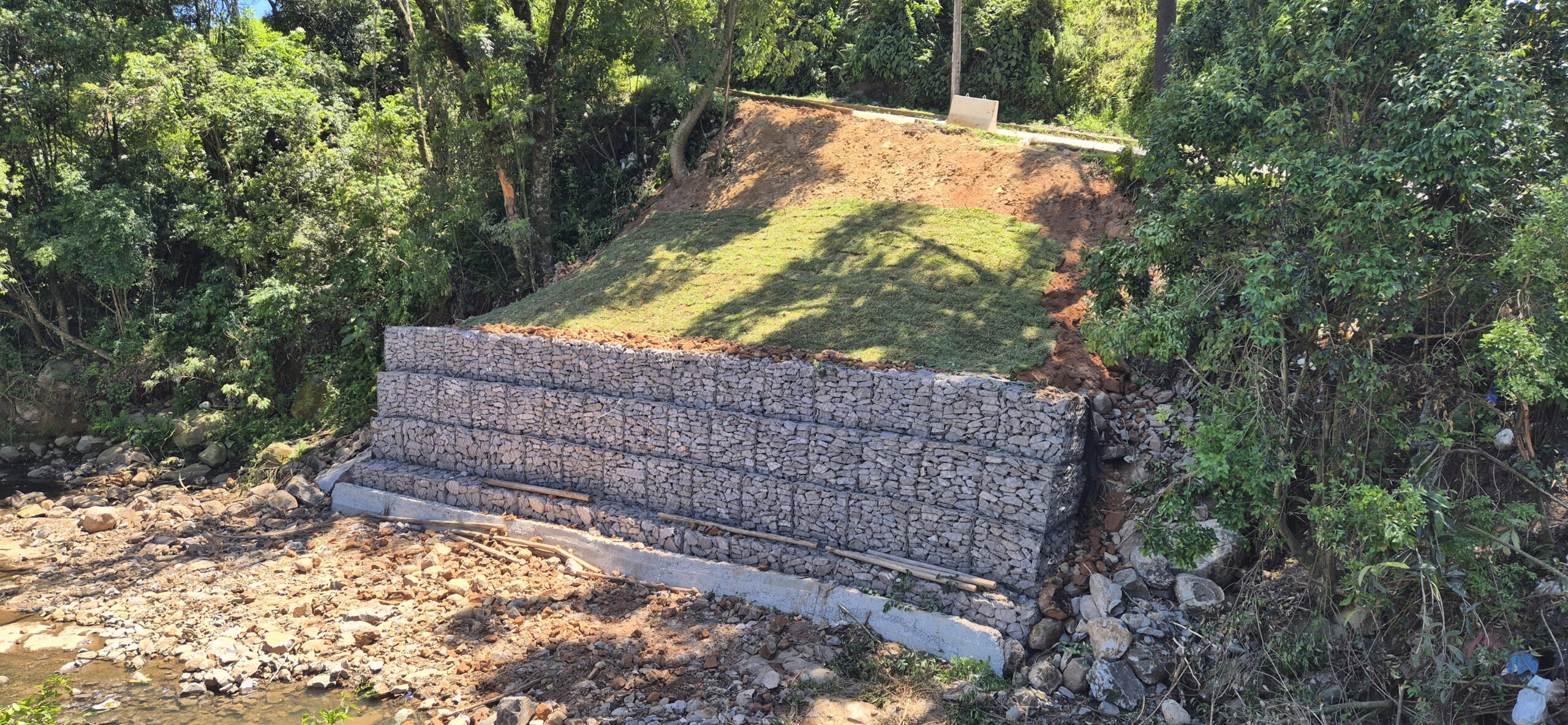 O trabalho contemplou a montagem de estruturas em gabiões, formadas por blocos de pedras envoltas em telas galvanizadas, associadas a serviços de drenagem, terraplenagem e estabilização do solo. A obra integra o mesmo contrato que contemplou intervenções semelhantes na Rua Giacomo Lira, no bairro Pedancino, ambas com o objetivo de restabelecer a segurança e a trafegabilidade das vias comprometidas por erosões após os eventos climáticos de 2024.
