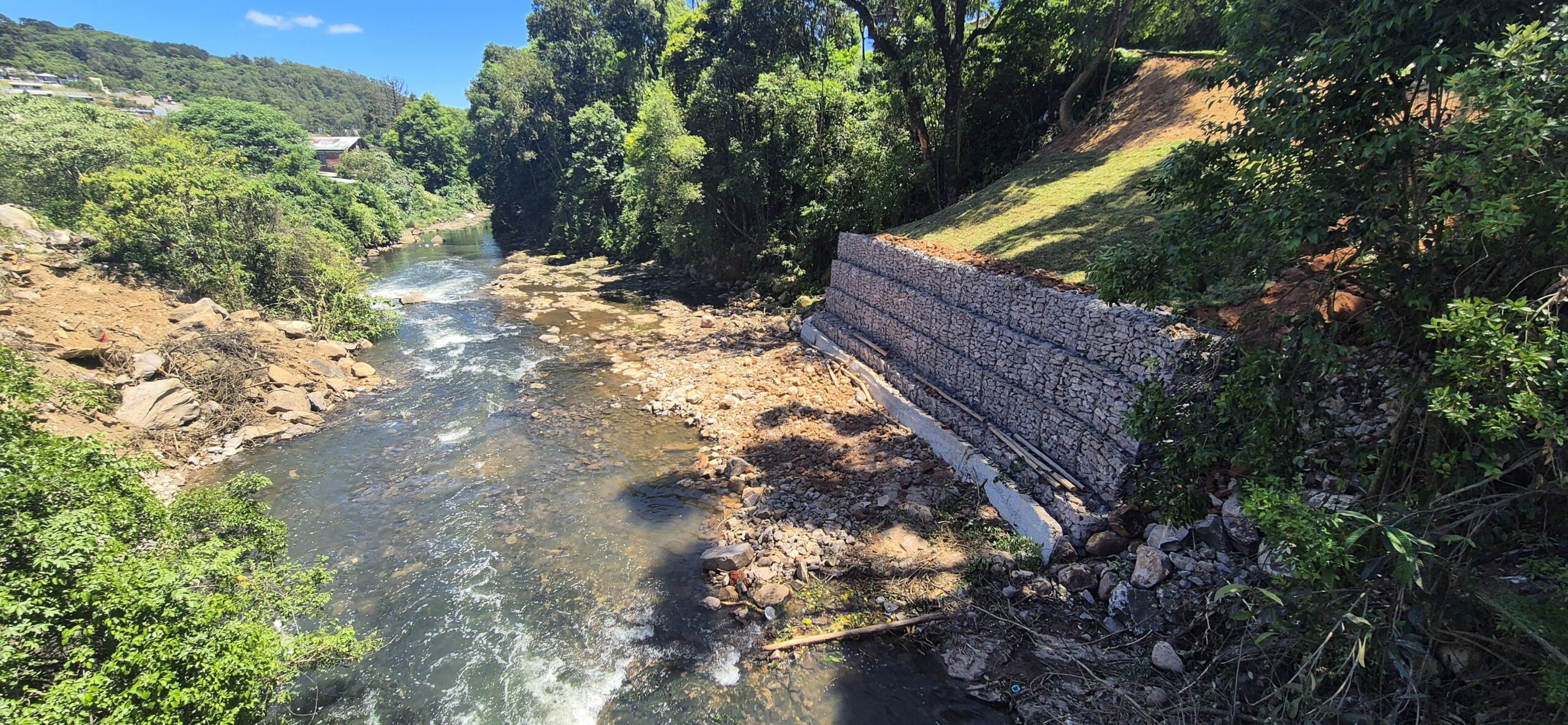 Conforme a Prefeitura, por meio da Secretaria Municipal de Obras (SMO), para segurar o baranco, no entorno do arroio Tega, foram colocados gabiões na Rua Francisco Spiandorello. A intervenção teve como objetivo conter erosões e garantir estabilidade ao terreno em área de encosta, proporcionando maior segurança a moradias e à trafegabilidade local.