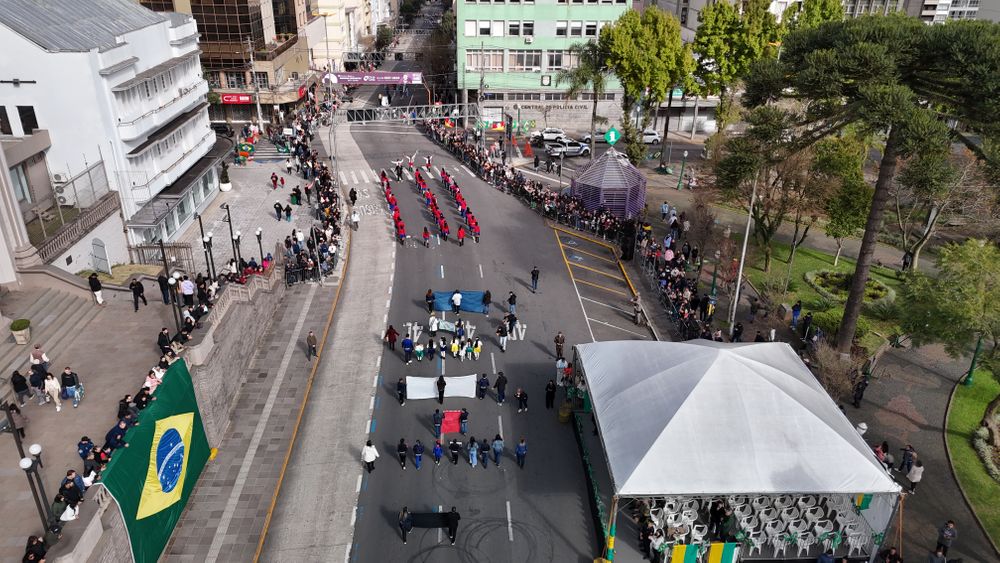 O Desfile da Independência reuniu aproximadamente 15 mil pessoas na rua Sinimbu, em Caxias do Sul, na manhã deste domingo (7). O evento contou com representantes de 47 entidades participantes. No palanque oficial, estavam presentes o Vice-prefeito Edson Néspolo e demais autoridades civis e militares.