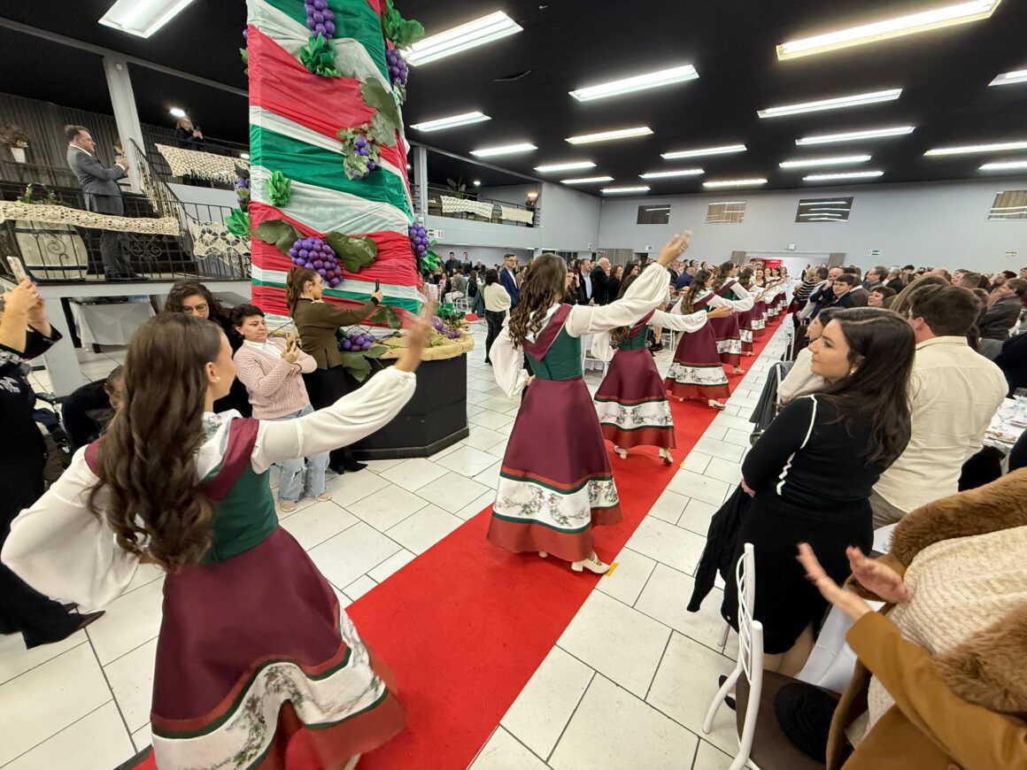 A emoção tomou conta do ambiente ao longo da noite, que foi repleta de celebração e forte valorização das raízes culturais. Também foi momento de apresentar à comunidade o novo traje das vindimadoras, figura tradicional da Festa. O conceito da vestimenta foi sugestão da subcomissão de Estilo da Festa, formada por Tatiana Totel Mohr, Eloisa Passos Dahmer, Ronya Souto e liderada por Elisa Kuver, que convidou a estilista Vivian Boff para idealizar e confeccionar os trajes. “Pensamos em uma peça versátil, confortável e com silhueta marcante para as embaixatrizes. Que elas encantem e levem a Festa da Uva por muitos lugares. Sinto uma imensa alegria em fazer parte dessa história. Como filha de vitivinicultores, quando criança, acompanhava quando meu pai ia expor as uvas para a abertura da Festa da Uva, e agora celebro um novo capítulo repleto de boas memórias”, afirma Vivian.