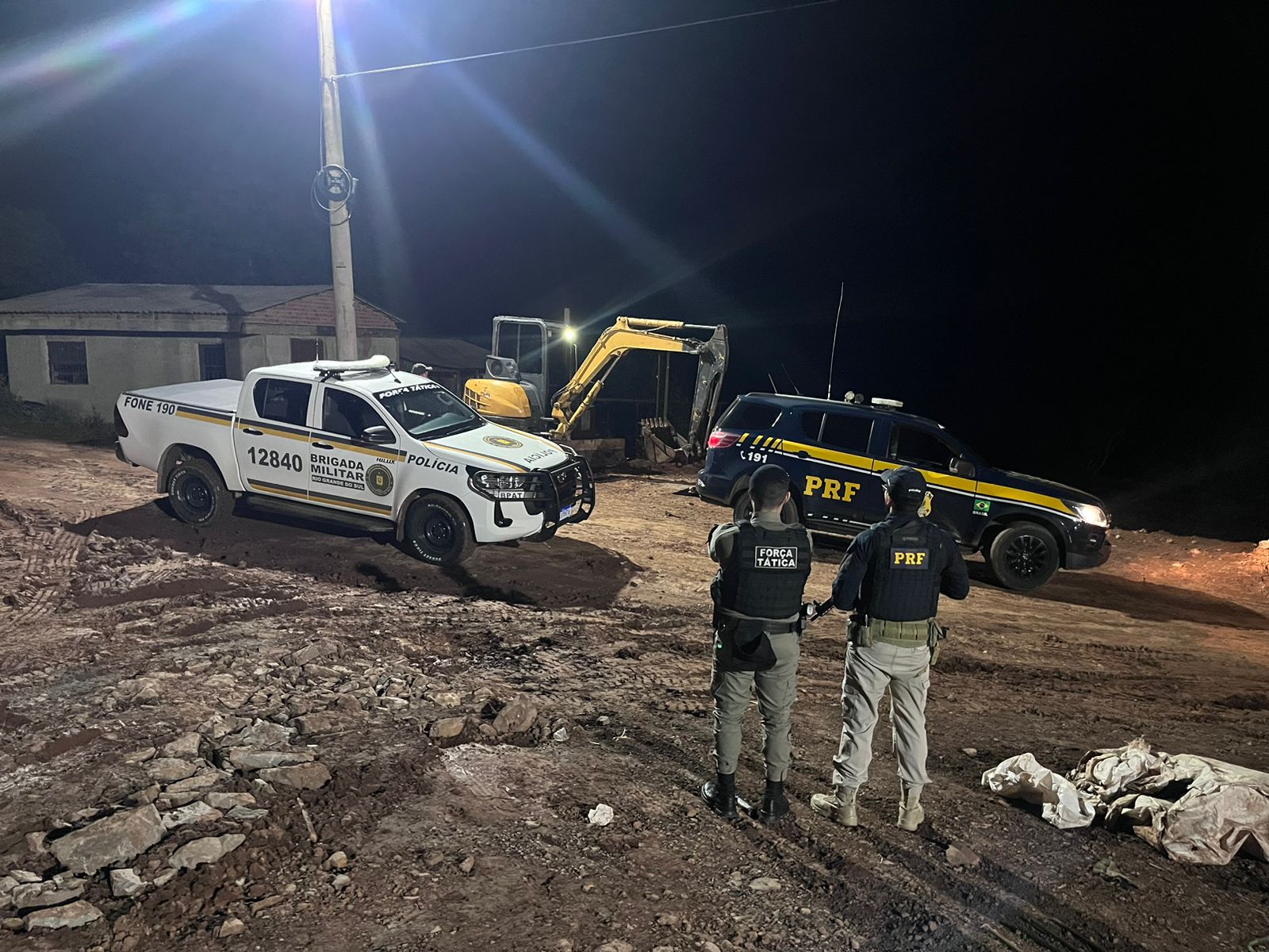 Durante a ação, os policiais identificaram o serviço de guincho responsável pela logística do transporte do equipamento de Farroupilha até a localidade. O motorista do guincho foi identificado e informou que foi contratado para realizar o frete, sem ter conhecimento prévio da origem ilícita do maquinário.