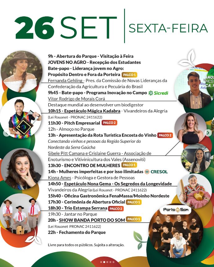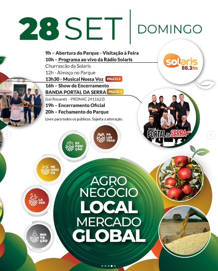 “Reforço o convite a toda população para que se façam presentes neste grande evento em Antônio Prado que neste ano também contemplará o setor de grãos, cereais e pecuária,” salienta Magnabosco.