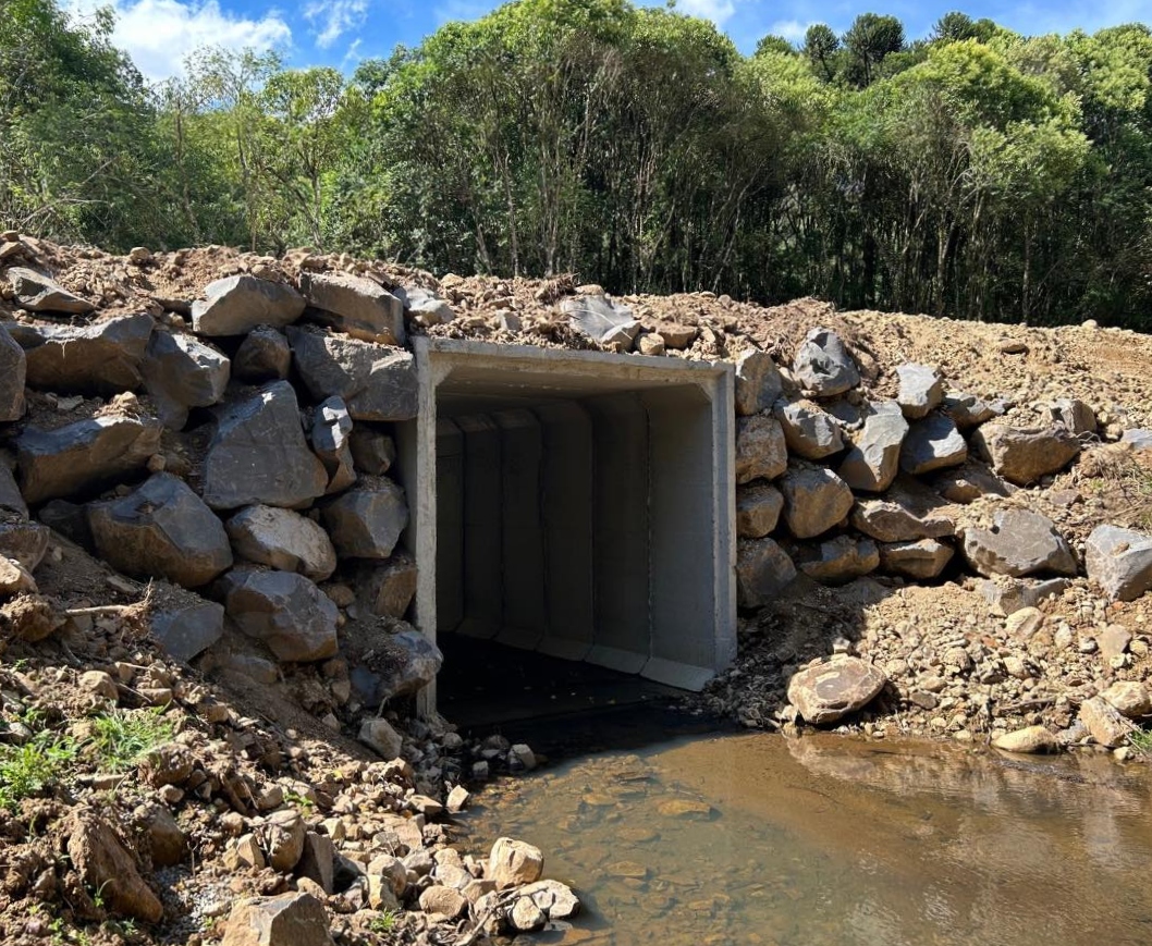 A substituição dos tubos por galerias permite uma maior vazão da água, evitando o acúmulo em períodos de chuvas intensas. Dessa forma, mesmo em dias de alto volume de água, a estrutura garante o escoamento adequado, evitando danos à estrada, entupimentos e transtornos aos usuários da via.