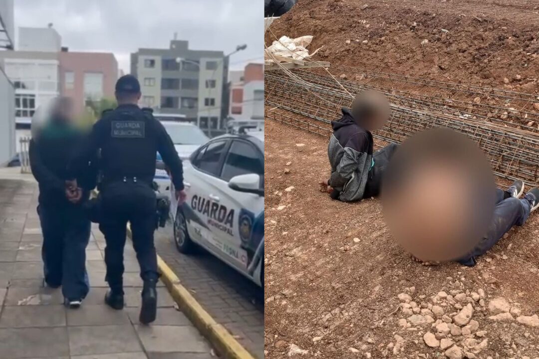 A Guarda Municipal de Caxias do Sul prendeu três homens neste domingo (12), em duas ocorrências distintas. Um deles era foragido da Justiça e os outros dois foram flagrados furtando materiais de construção.
