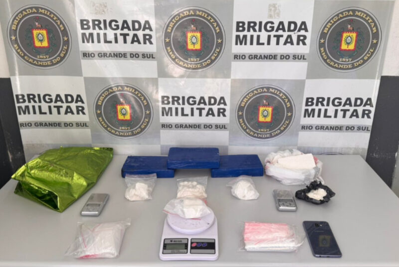 Na ação, foram apreendidas três balanças de precisão, um aparelho celular, três tijolos de cocaína pesando 3.101 gramas, além de outras seis porções da mesma substância que totalizaram 1.276 gramas. Também foram recolhidos uma sacola verde e diversos pacotes do tipo zip lock empregados na preparação e no acondicionamento da droga.