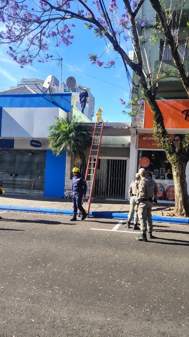 Com a chegada do Corpo de Bombeiros, foi elaborado um plano de ação para retirar o homem, que se encontrava em surto, com os punhos amarrados por um fio elétrico, demonstrando intenso transtorno emocional. A BM auxiliou na contenção e remoção do indivíduo, que foi imobilizado e retirado do telhado por meio de uma maca mobilizadora. Para garantir a segurança da operação, foi necessário chegar o trânsito na Rua Pena de Moraes, devido ao intenso fluxo de veículos na via.