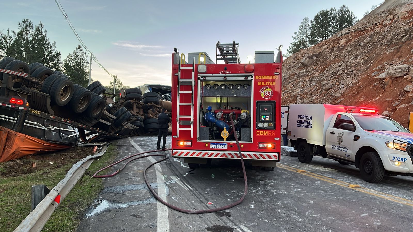 Após o impacto, a carreta tombou e bloqueou completamente a via. Osmar, o motorista da carreta, morreu no local. Ele era natural de Vacaria.