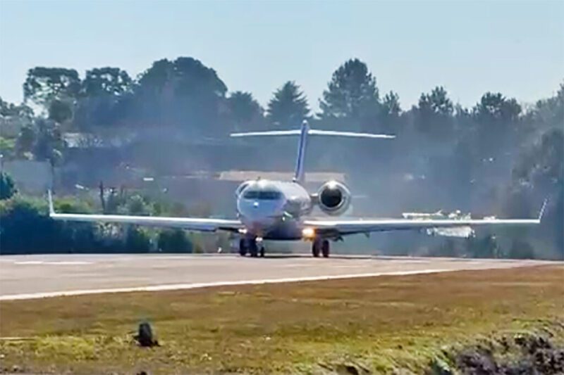 O avião é um Bombardier Global 5000, de matrícula PS-STP, operado por empresas dos setores agrícola, de autopeças e imobiliário. A decolagem foi feita em direção ao Aeroporto Executivo Catarina, em São Roque (SP).