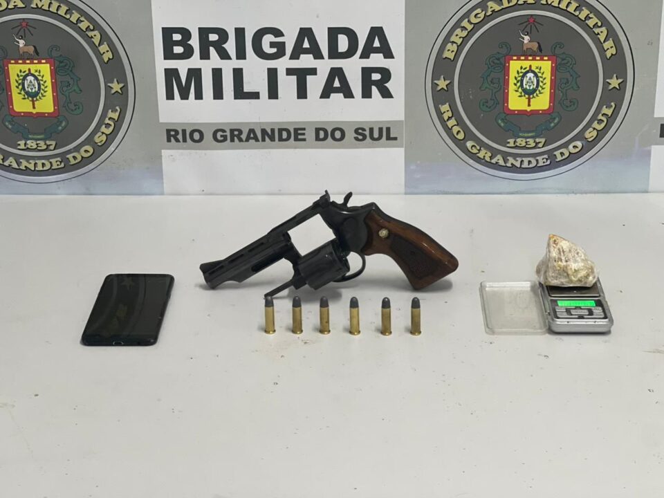 Com o homem foram apreendidos um revólver calibre 38, seis munições do mesmo calibre, 50g de crack e uma balança de precisão.