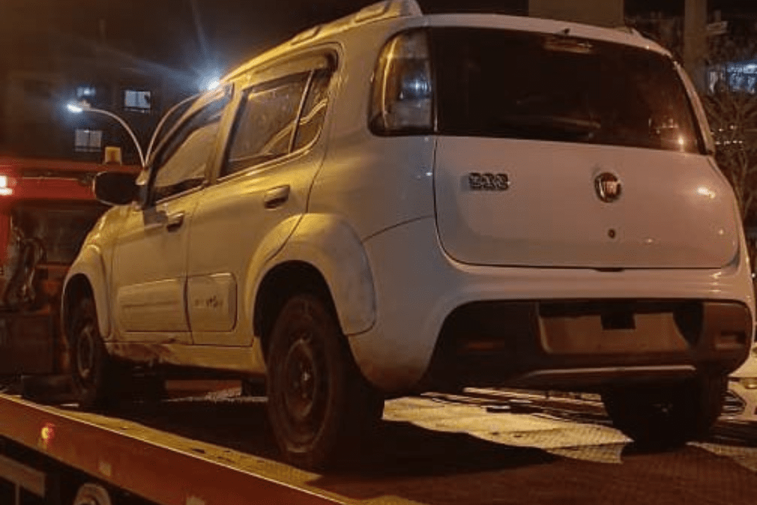 Os policiais abordaram um veículo Fiat Uno com placas clonadas. Após a verificação, foi constatado que o automóvel estava em ocorrência de roubo na cidade de Canoas.