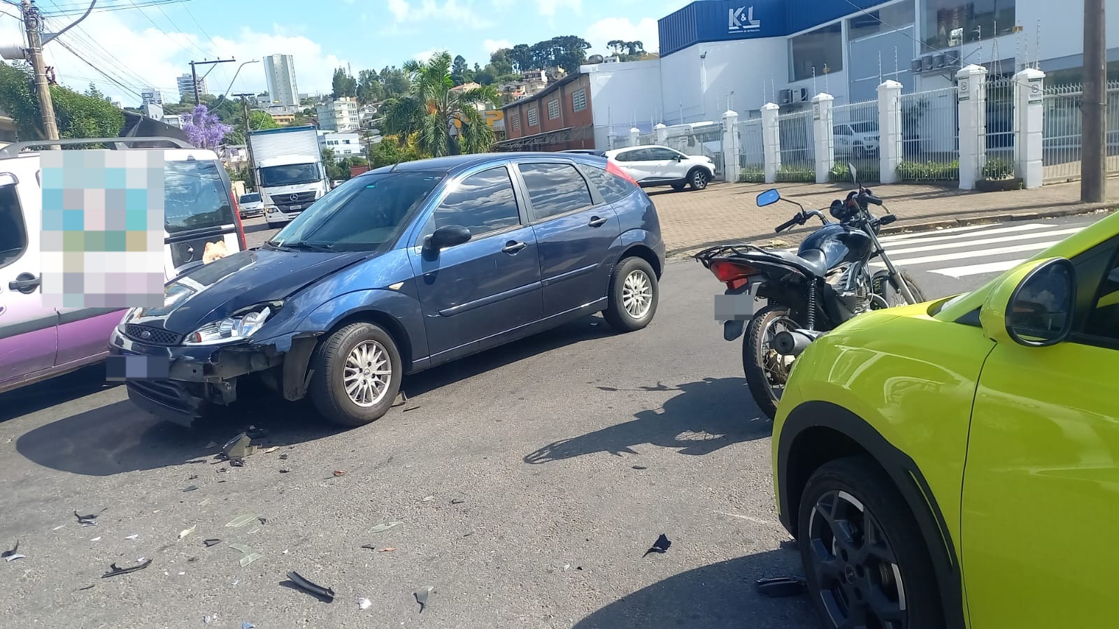 Um acidente envolvendo um Ford Focus e uma motocicleta deixou um motociclista de 54 anos ferido na manhã desta quinta-feira (27), no cruzamento da Rua Evaristo de Antoni com a Av. Governador Roberto Silveira, em Caxias do Sul.