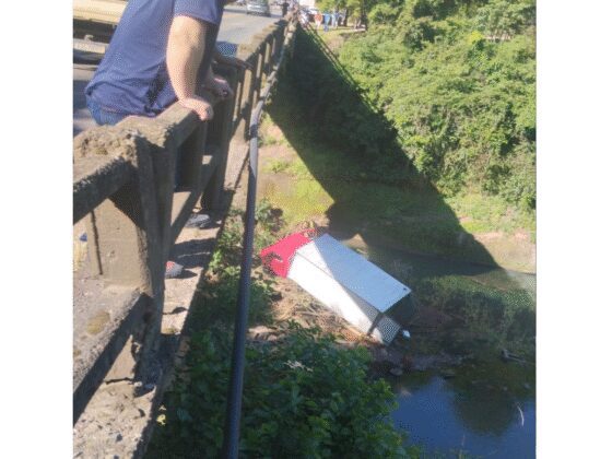Uma mulher ficou ferida após cair com o seu veículo de uma ponte sobre o Arroio Candeia, na ERS-122, em São Sebastião do Caí, na região do Vale, no início da tarde desta quinta-feira (15). Ela conduzia um Jeep/Renegade, com placas de Canoas, no sentido Serra-Região Metropolitana, quando perdeu o controle da camionete e despencou de uma altura de sete metros. O carro caiu no vão central da ponte e a condutora caiu na água.