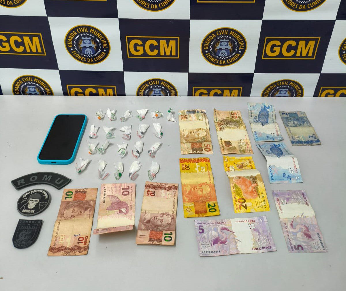 Os agentes abordaram um veículo que trafegava de forma suspeita por uma rua pouco movimentada. Durante a fiscalização, constataram que a condutora não possuía Carteira Nacional de Habilitação (CNH). Na vistoria do automóvel, os guardas localizaram uma quantia em dinheiro e invólucros com substância semelhante à cocaína.