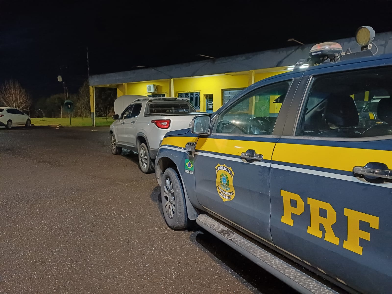O veículo, uma Fiat Toro, foi parado pelos agentes para fiscalização. Após vistoria, os policiais constataram que a caminhonete usava placas falsas. O sistema indicou que o carro havia sido roubado à mão armada em novembro de 2024, em Porto Alegre.