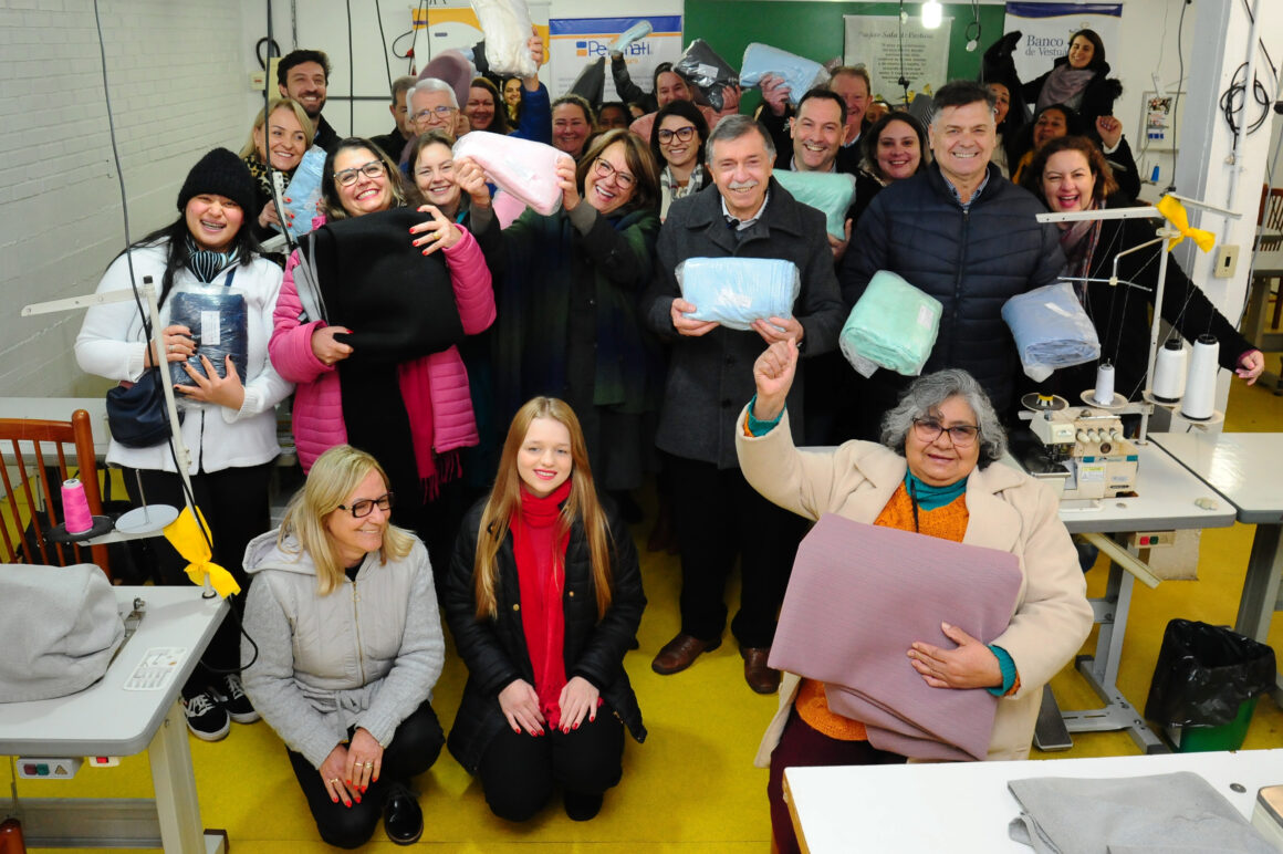 “O Banco do Vestuário realmente é uma entidade que a gente deve ter muito orgulho. Caxias tem que se orgulhar muito! Porque é uma doação permanente. É tanto amor envolvido neste trabalho… E vocês meninas que estão aqui, deixam a casa de vocês para estarem aqui nos ajudando, eu agradeço do fundo do meu coração”, comentou emocionada a primeira-dama, Jussara Canali, ao se dirigir às voluntárias que participaram da confecção das peças.