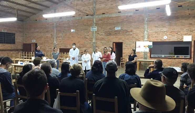 A visita contou com a presença de vários profissionais de saúde, a comunidade assistiu a palestra de orientação com nutricionista e após os munícipes receberam atendimento individual com os profissionais da saúde.