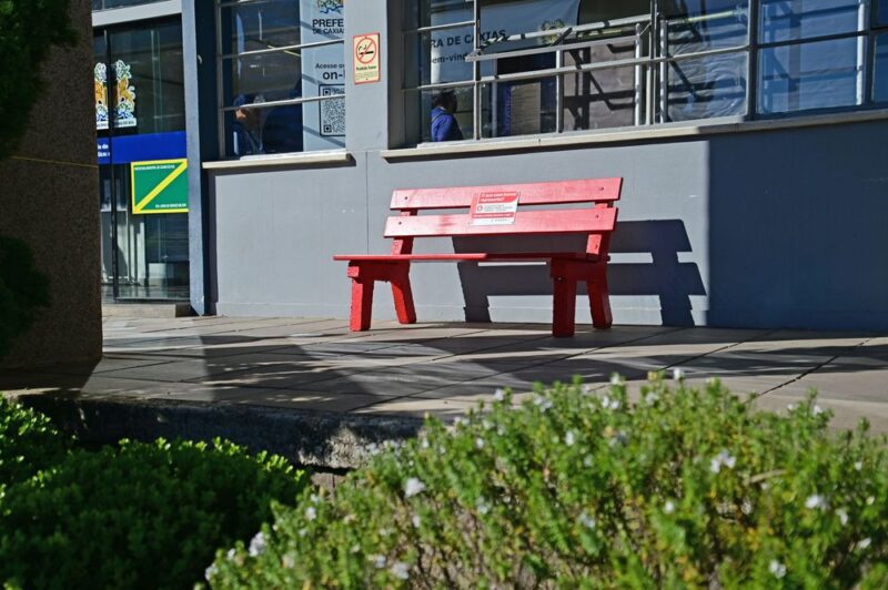 Codeca ganha Banco Vermelho alusivo ao combate à violência contra a mulher