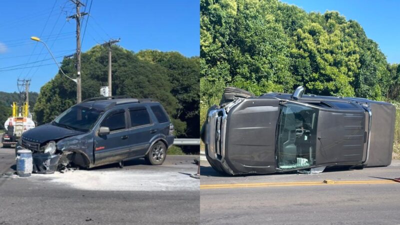 Após a colisão, caminhonete tombou na pista Um acidente de trânsito entre uma Ford Ecosport e uma Ford Ranger foi registrado na manhã desta terça-feira (2), pouco antes das 8h,…