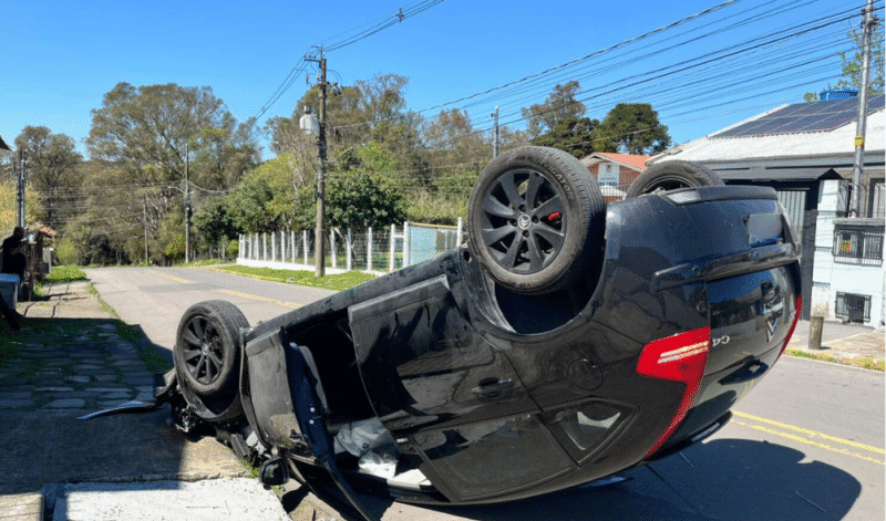 Mulher fica ferida após capotar carro no bairro Portal da Maestra, em Caxias do Sul
